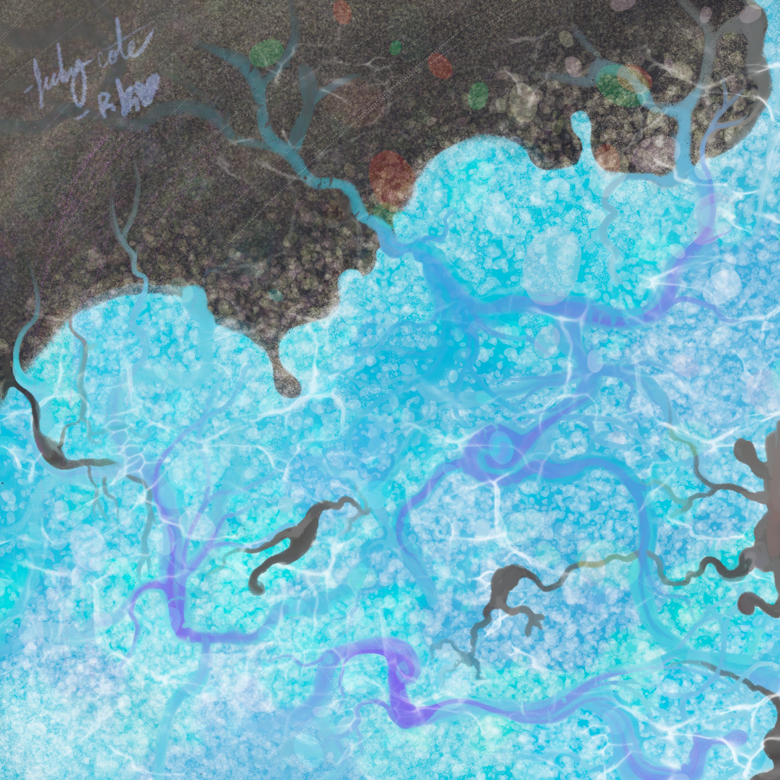 Then we excitedly came up with an idea. We’d start a new canvas, I’d start by laying some colors and shapes down and then she’d react to the chaos with her own. No time limits, we’d just each go until we were ready to see what the other would do with our fantastic mess.