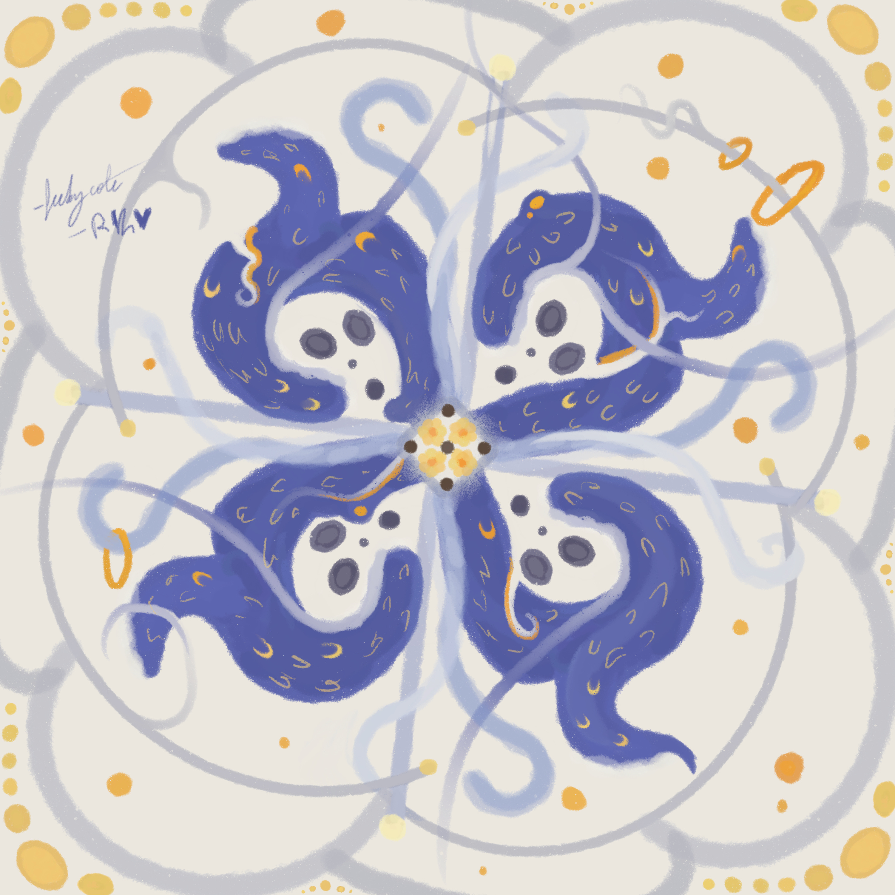 Whenever I noticed her trying to do something that Procreate had a tool for I’d ask if she wanted to see something neat that might help. I think her favorites were the color picker, the symmetry tool and of course- one of the glitter brushes.